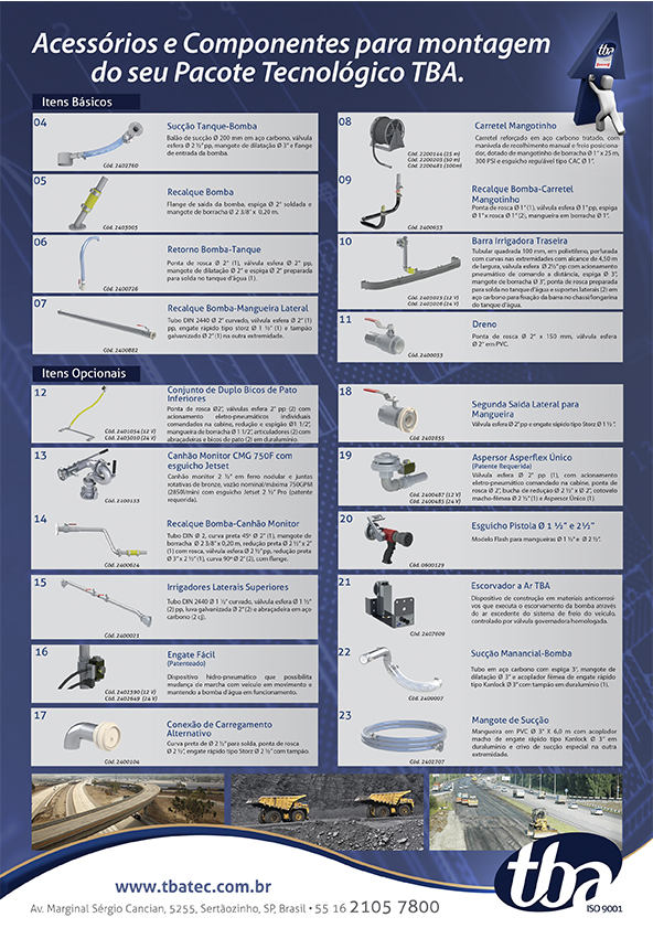 A TBA definiu sua política de Assistência Técnica de forma muito particular, por ter a visão de que pela especificidade de seus produtos seria necessário reforçar o papel dos serviços agregados, dando assim a consistência adequada à cada fornecimento...